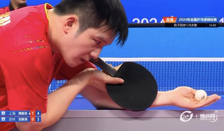 全锦赛男团1/8决赛:樊振东领衔的上海地产集团队3-0吉林银河队