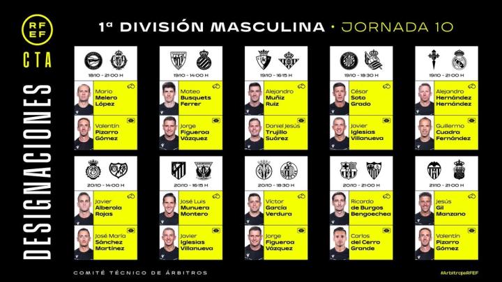 西甲第10轮裁判:埃尔南德斯执法皇马,德布尔戈斯执法巴萨ETChalmers2024-10-17 21:20西班牙足协官方公布了西甲第10轮的裁判安排,埃尔南德斯-埃尔南德斯将执法塞尔塔vs皇家马德里,德布尔戈斯将执法巴塞罗那vs塞维利亚。塞尔塔主场对阵皇家马德里的比赛将由埃尔南德斯-埃尔南德斯执法,夸德拉-费尔南德斯担任VAR。德布尔戈斯将执法巴塞罗那vs塞维利亚,VAR为德尔塞罗-格兰德。马德里竞技vs莱加内斯的比赛将由何塞-穆努埃拉担任主裁,伊格莱西亚斯-比利亚努埃瓦担任VAR。展开更多