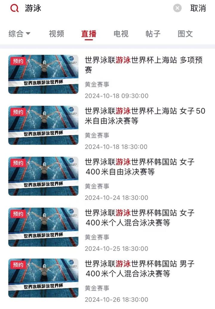 游泳世界杯上海站明日开战,CCTV5和央视频将会直播我的靴子里面有蛇 @懂球帝2024-10-17 21:37游泳世界杯上海站的比赛将于明日正式拉开帷幕,目前转播平台已确定,央视和央视客户端都会直播本次比赛。(CCTV5转播安排)明天的预赛将会在9:30开始,18:30开始决赛项目的争夺。CCTV5将会直播明晚的决赛,央视频APP将会播出预赛和决赛。(央视频转播安排)相关阅读【游泳世界杯上海站明日赛程出炉,张雨霏、潘展乐等奥运冠军将亮相】【覃海洋明早出战游泳世界杯上海站比赛;比赛直播平台仍未确定】展开更多
