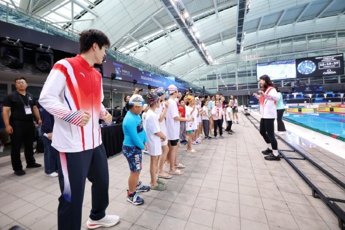 挺有范儿,比赛前张雨霏&潘展乐担任一日教练,开展冠军课堂