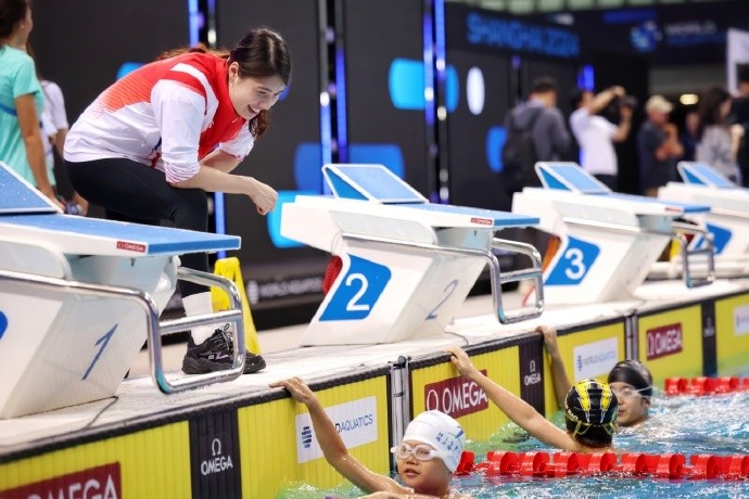 北京时间10月17日,国际泳联公布了游泳世界杯上海站(短池)的首日赛程,奥运冠军张雨霏、潘展乐也将出战本次比赛。并且在比赛前,他们出席了活动方组织的冠军课堂,充当了一日教练,指导小运动员。