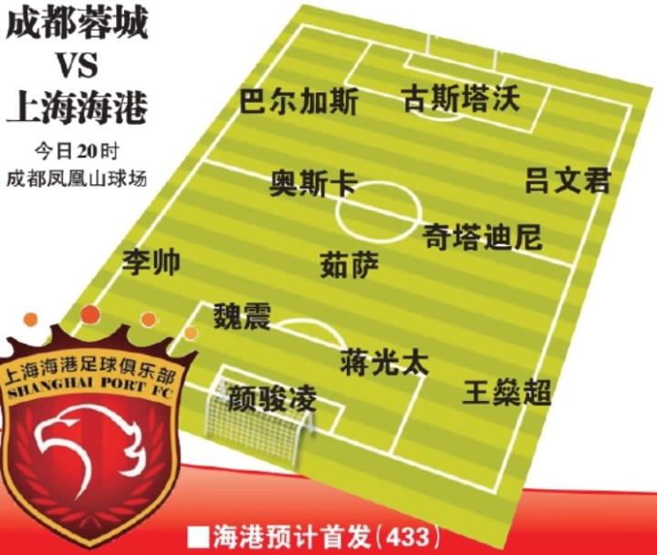 《东方体育日报》预测上海海港首发:颜骏凌、王燊超、蒋光太、魏震、李帅、茹萨、奇塔迪尼、奥斯卡、吕文君、巴尔加斯、古斯塔沃。