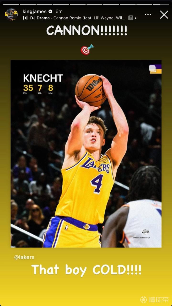 詹姆斯转发了克内克特本场比赛的数据,并配文道:“大炮!!!!!!!,这个伙计太酷了。”