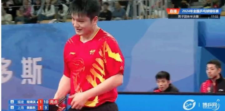 男团半决赛次盘:樊振东3-2战胜程靖淇,上海男团2-0福建男团