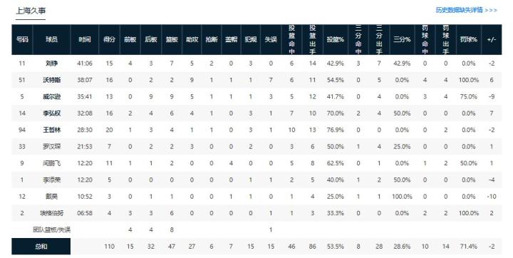 上海久事王哲林20分4板1助1断,特雷蒙特-沃特斯16分2板9助1断1帽,李弘权16分2板4助;
