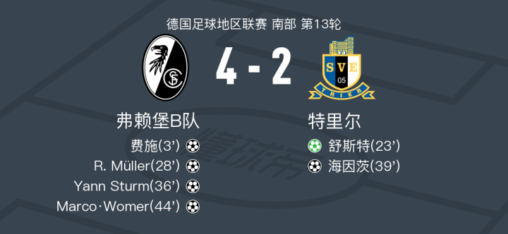 弗赖堡B队4-2特里尔,Marco·Womer、Yann Sturm破门