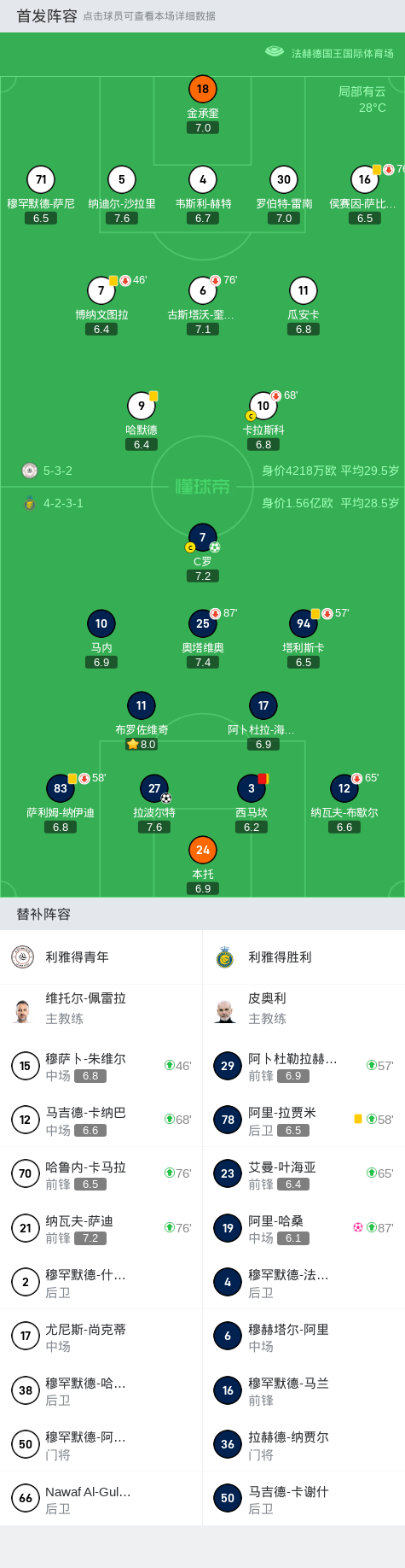 胜利2-1利雅得青年迎6连胜,C罗点射绝杀,哈默德读秒失绝平