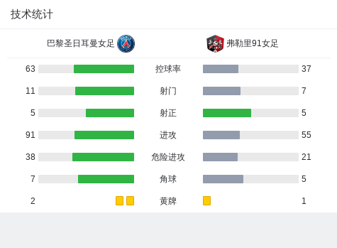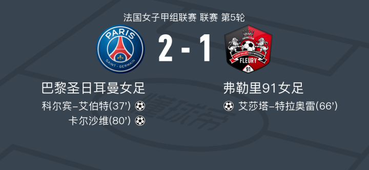 巴黎圣日耳曼女足2-1弗勒里91女足取法女甲5连胜,卡尔沙维、科尔宾-艾伯特破门