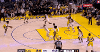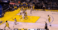第二节,勇士延续势头希尔德、库明加相继带队打出连续反击,将分差一度拉大至28分,节末段湖人布朗尼里突外投连得5分止血,半场战罢,勇士66-40湖人。