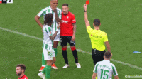 第90+6分钟,纳坦-德索萨争抢犯规,主裁判观看VAR后改判红牌