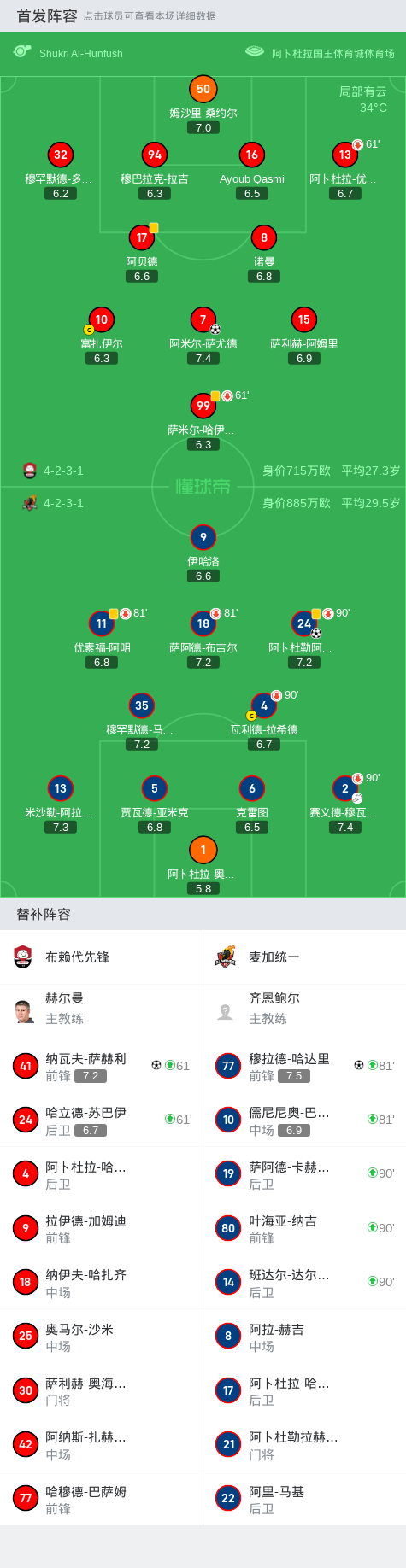 下半场补时第5分钟,麦加统一球员穆拉德-哈达里打入一球。