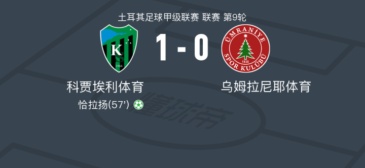 科贾埃利体育1-0乌姆拉尼耶体育,恰拉扬点射制胜