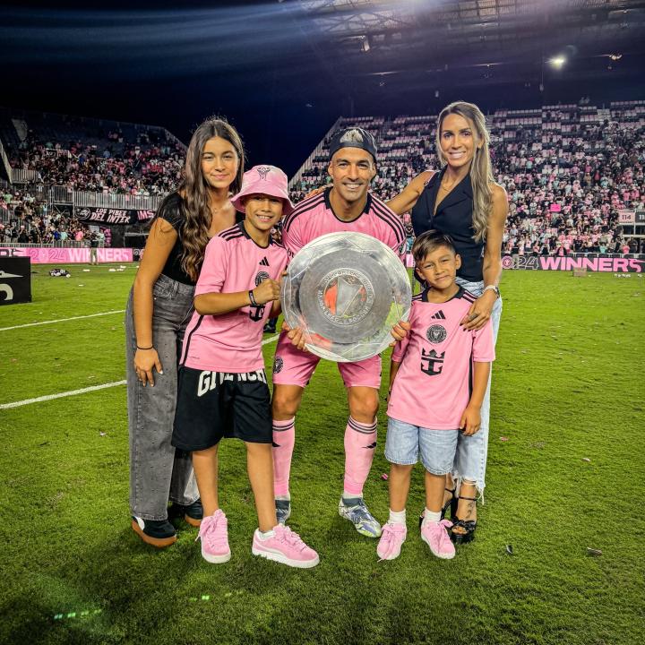 苏亚雷斯晒照:与我们的球迷一同庆祝冠军和新纪录LaPulga @懂球帝2024-10-20 11:11美职联常规赛收官战,迈阿密国际6-2大胜新英格兰革命,并在赛后捧起冠军奖杯。苏亚雷斯更新了社交媒体,庆祝了这一具有纪念意义的时刻。苏亚雷斯在社交媒体上晒出了与家人们的合照,并配文写道:“与我们的球迷和那些永远在那里的人们一起庆祝冠军头衔和新纪录!季后赛即将来临。”本场比赛苏亚雷斯贡献了两粒进球和两次助攻,本赛季美职联常规赛,苏亚雷斯27场比赛打入了20球,送出了9次助攻。展开更多