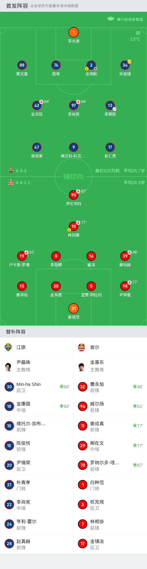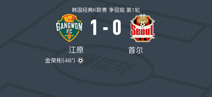 在韩国经典K联赛争冠组的首轮较量中,江原队坐镇主场迎战首尔FC。比赛中,江原队的李期奕送出精妙助攻,金荣彬抓住机会成功破门,为球队取得领先。最终,江原队以1-0小胜首尔FC,取得了本场比赛的胜利。