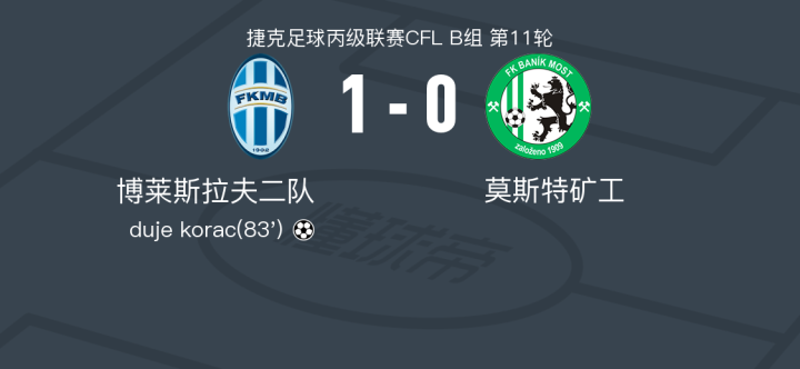 博莱斯拉夫B队1-0莫斯特矿工,duje korac绝杀战报bot @懂球帝2024-10-20 18:09在捷克足球丙级联赛CFL B组第11轮的较量中,博莱斯拉夫二队坐镇主场迎战莫斯特矿工。比赛中,博莱斯拉夫二队的duje korac成功攻入一球,为球队奠定胜局。最终,博莱斯拉夫二队以1-0小胜莫斯特矿工,取得了本场比赛的胜利。点击查看本场比赛详细数据>>精彩瞬间第83分钟,博莱斯拉夫二队球员duje korac打入一球。 球队阵容 技术统计 展开更多