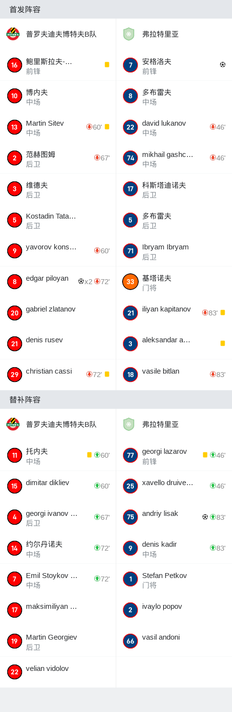 第42分钟,普罗夫迪夫博特夫B队球员edgar piloyan打入一球。