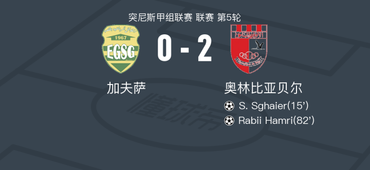 奥林比亚贝尔2-0加夫萨取突尼甲5连胜,S. Sghaier破门,Rabii Hamri锁定胜局