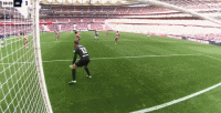 第58分钟,利诺铲射打偏,随后撞到门柱上痛苦倒地