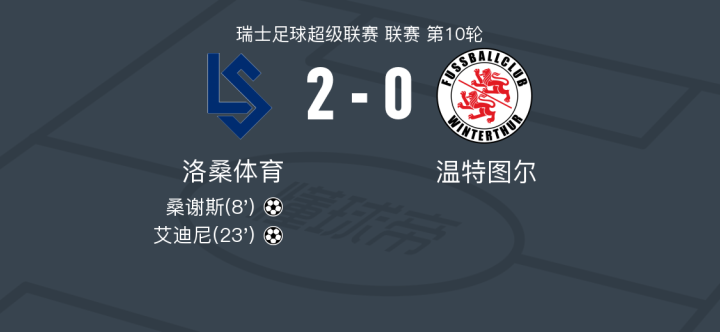 洛桑体育2-0温特图尔,桑谢斯建功,艾迪尼锁定胜局
