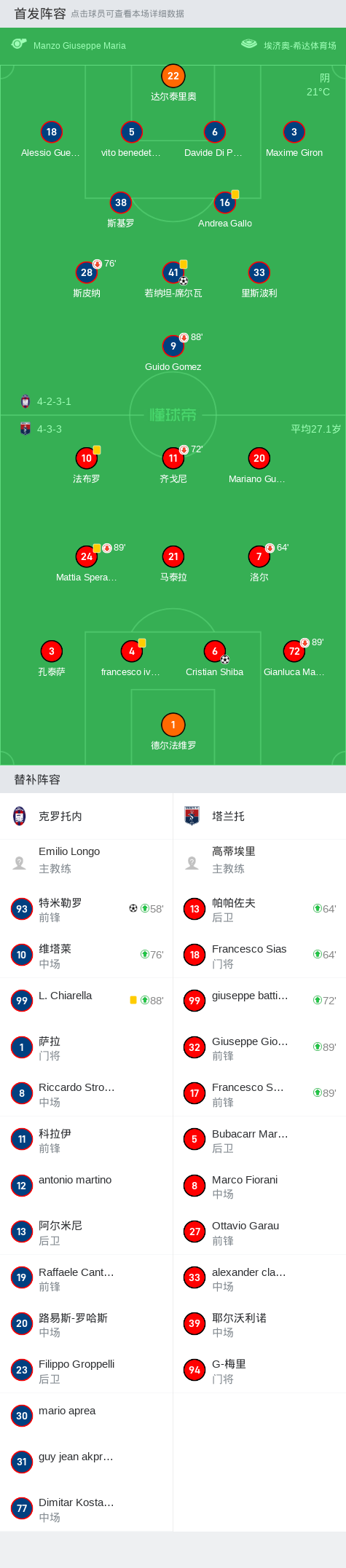 第80分钟,克罗托内球员特米勒罗打入一球。