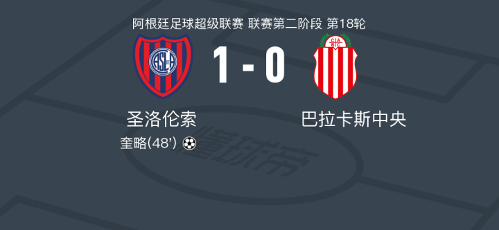 在阿根廷足球超级联赛第二阶段第18轮的较量中,圣洛伦索坐镇主场迎战巴拉卡斯中央。比赛中,圣洛伦索的切鲁蒂送出精妙助攻,奎略成功破门,为球队取得领先。最终,圣洛伦索以1-0小胜巴拉卡斯中央,捍卫了主场荣耀。