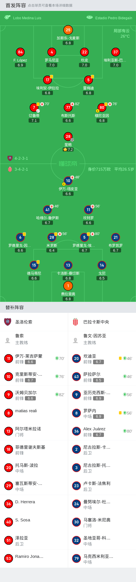 第48分钟,圣洛伦索球员切鲁蒂助攻奎略打入一球。