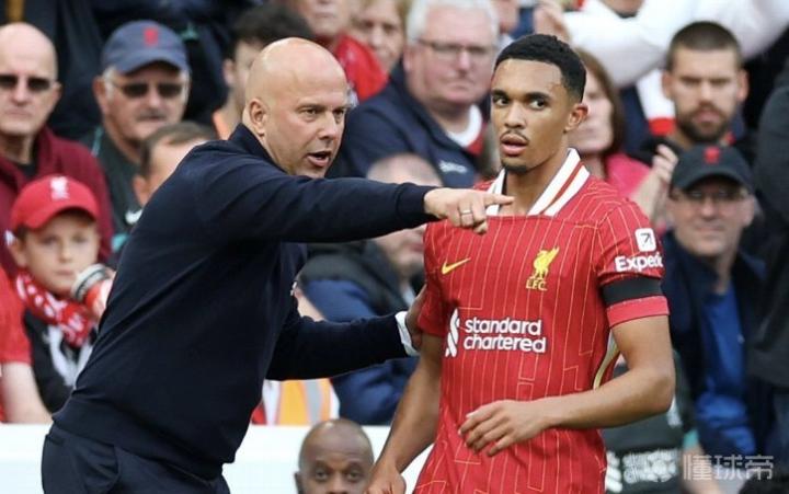 (图)赛后,斯洛特告诉阿诺德“我看见萨拉赫在打右后卫”。