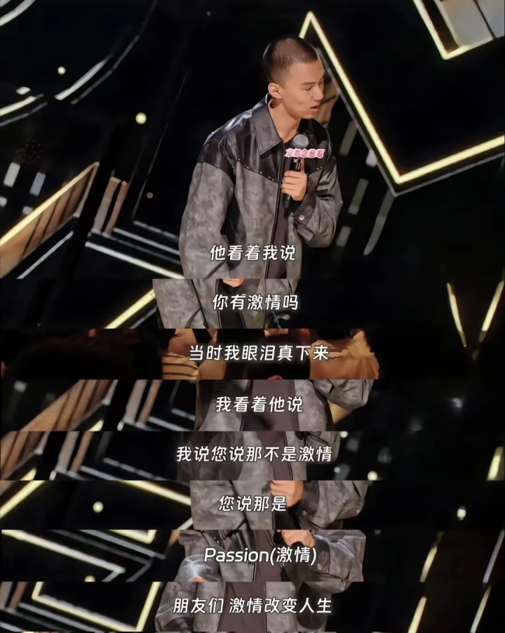 “人生就是要有 passion” 这个梗源自脱口秀演员付航在一脱口秀节目中的表演。在讲述自己的受挫经历时,一句极具感染力的"Passion!"迅速火遍全网,并成为鼓励人们积极面对生活的口号。