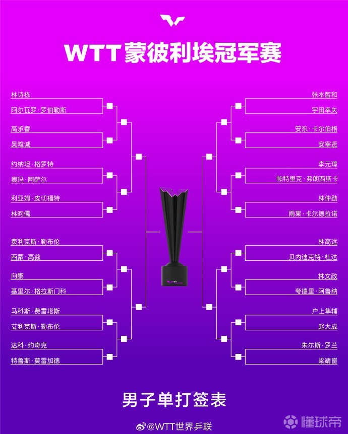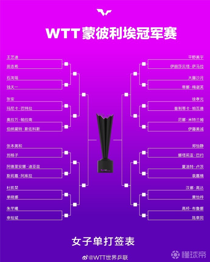 WTT蒙彼利埃站抽签:王艺迪、张本美和同在上半区;张本智和首轮内战