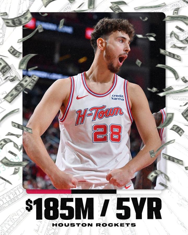 据NBA记者Bobby Marks报道,阿尔佩伦-申京与火箭队签下一份5年1.85亿美元的续约合同,合同中的最后一年为球员选项。