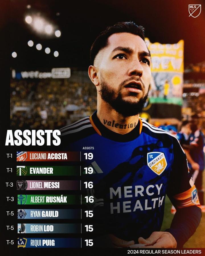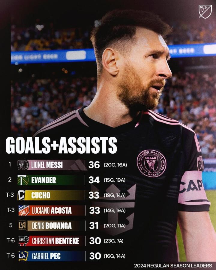 美职联官方晒图,梅西常规赛创造36球领跑进球+助攻榜