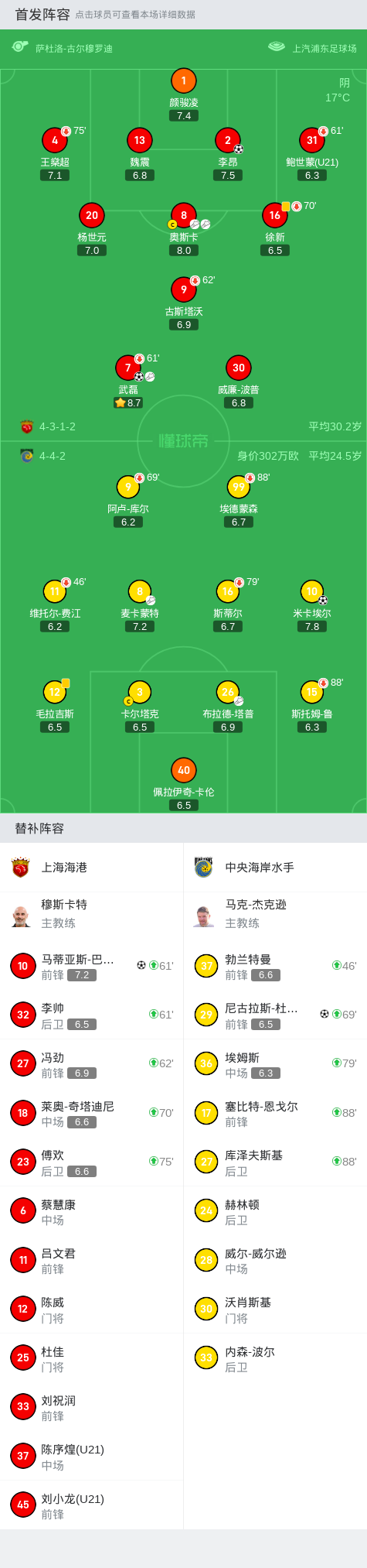 第70分钟,奇塔迪尼替补登场,换下徐新