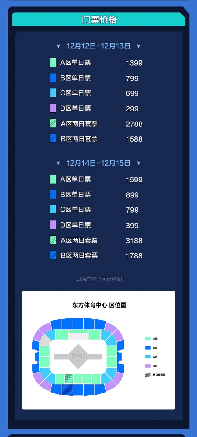 12月12日-12月13日(周四周五),单日票价由299元-1399元。