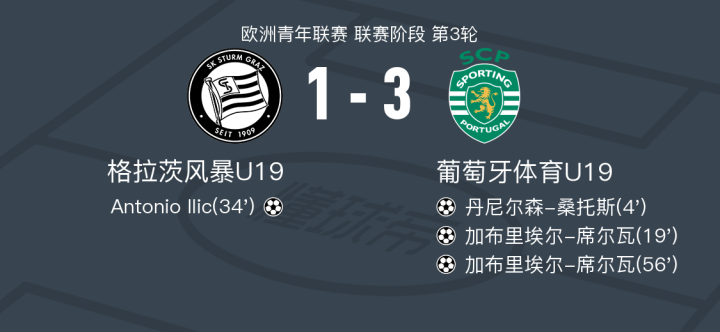 葡萄牙体育U19 3-1格拉茨风暴U19,加布里埃尔-席尔瓦梅开二度,丹尼尔森-桑托斯1传1射