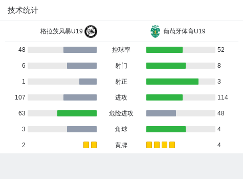 在欧洲青年联赛的较量中,格拉茨风暴U19迎战葡萄牙体育U19。比赛中,葡萄牙体育U19的加布里埃尔-席尔瓦表现出色,助攻丹尼尔森-桑托斯率先破门,随后又在爱德华多-费利西西莫的助攻下攻入一球。格拉茨风暴U19的Antonio Ilic在莱昂-格尔吉奇的助攻下为球队扳回一城。然而,葡萄牙体育U19的丹尼尔森-桑托斯再次助攻加布里埃尔-席尔瓦,后者完成梅开二度。最终,葡萄牙体育U19以3比1战胜格拉茨风暴U19。