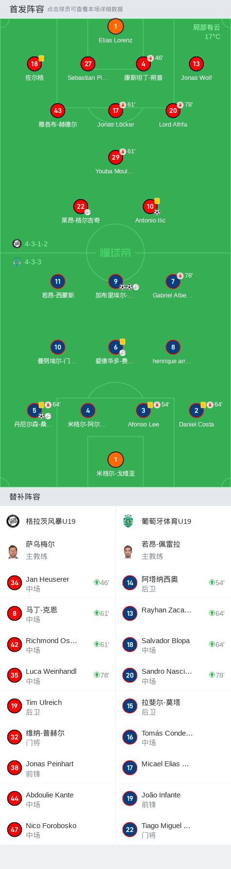 第34分钟,格拉茨风暴U19球员莱昂-格尔吉奇助攻Antonio Ilic打入一球。