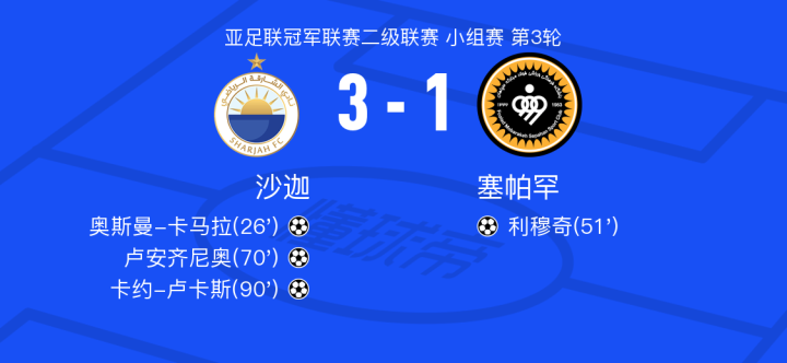 沙迦3-1塞帕罕,卡约-卢卡斯破门,卢安齐尼奥建功