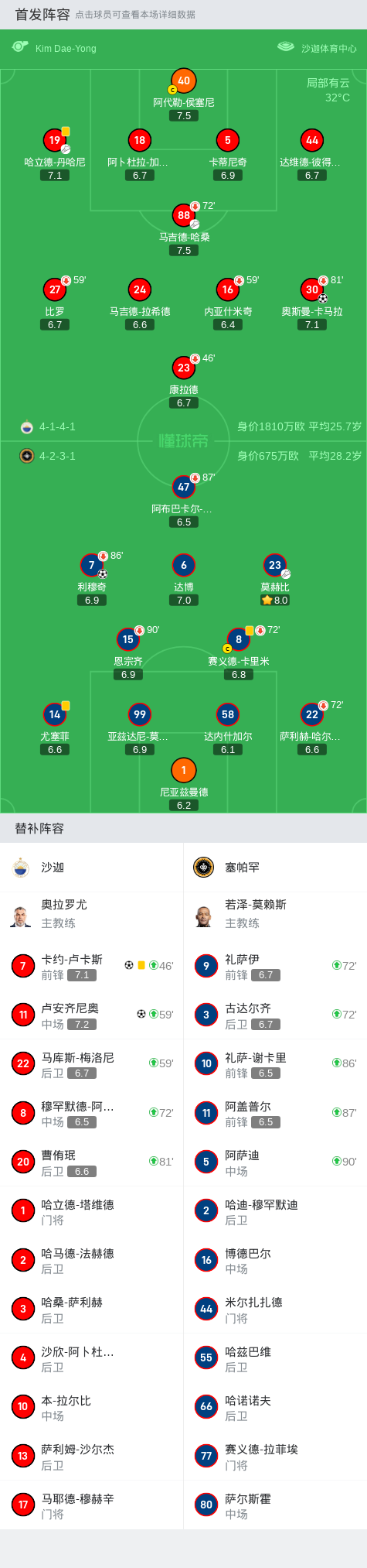 第26分钟,沙迦球员哈立德-丹哈尼助攻奥斯曼-卡马拉打入一球。