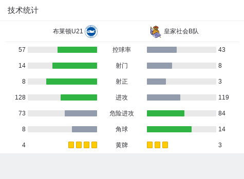 布莱顿U21 1-0皇家社会B队,达弗斯助球队取胜战报bot @懂球帝2024-10-23 04:23在超级联赛国际杯小组赛中,布莱顿U21迎战皇家社会B队。比赛中,布莱顿U21的达弗斯成功破门,为球队取得领先。最终,布莱顿U21以1-0战胜皇家社会B队,取得了比赛的胜利。点击查看本场比赛详细数据>>精彩瞬间第24分钟,布莱顿U21球员达弗斯打入一球。 技术统计 展开更多