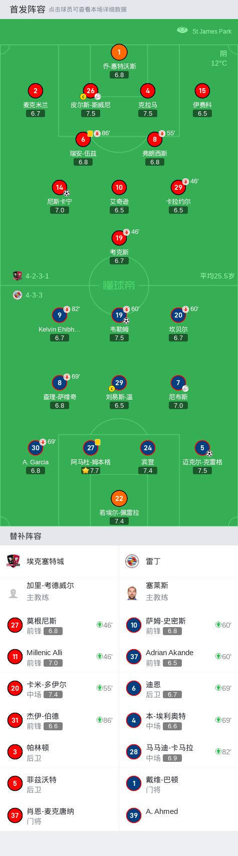 在英格兰足球甲级联赛第13轮的较量中,埃克塞特城坐镇主场迎战雷丁。比赛伊始,雷丁迅速进入状态,由尼布斯助攻,韦勒姆率先为球队取得领先。随后,雷丁的迈克尔-克雷格再下一城,扩大了领先优势。下半场,埃克塞特城展开反击,皮尔斯-斯威尼助攻尼斯卡宁扳回一球。然而,尽管埃克塞特城奋力追赶,最终未能改写比分。比赛结束,雷丁以2-1的比分在客场带走胜利。