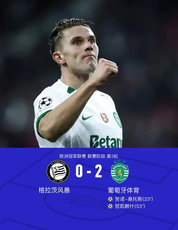 在欧洲冠军联赛小组赛的较量中,葡萄牙体育与格拉茨风暴展开对决。比赛中,葡萄牙体育展现了出色的进攻能力。首先,哲凯赖什送出精妙助攻,努诺-桑托斯成功破门,为球队首开纪录。随后,德巴斯特再次为哲凯赖什创造机会,后者不负众望,再次攻入一球。最终,葡萄牙体育以2比0的比分战胜格拉茨风暴,取得了比赛的胜利。