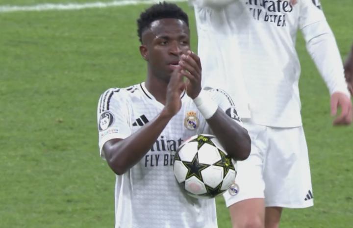 此役主场对阵多特蒙德,首发出战的维尼修斯在比赛第62分钟、第86分钟和第93分钟各入一球,上演帽子戏法,帮助皇马5-2逆转击败对手。