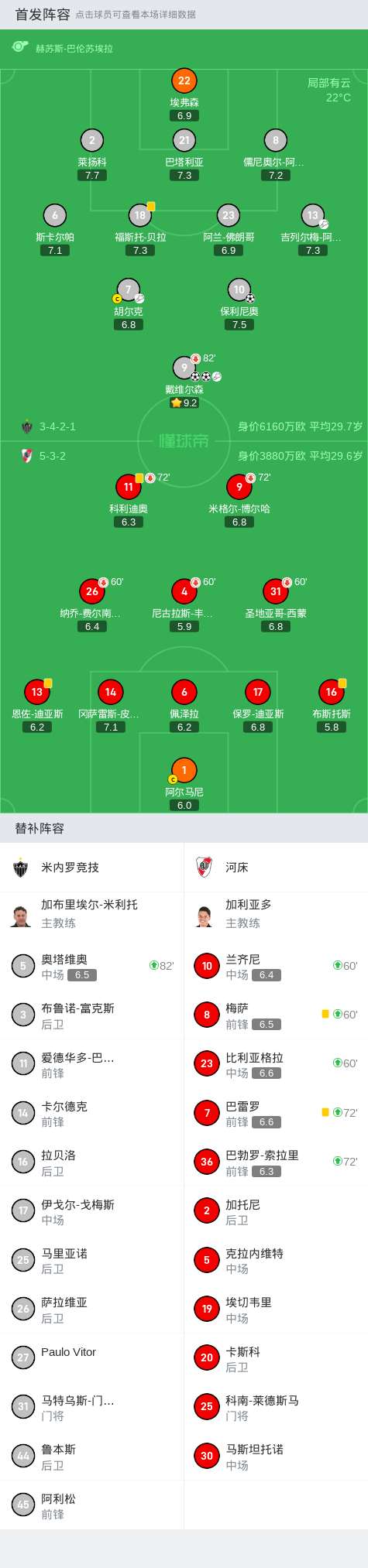 第22分钟,米内罗竞技球员胡尔克助攻戴维尔森打入一球。