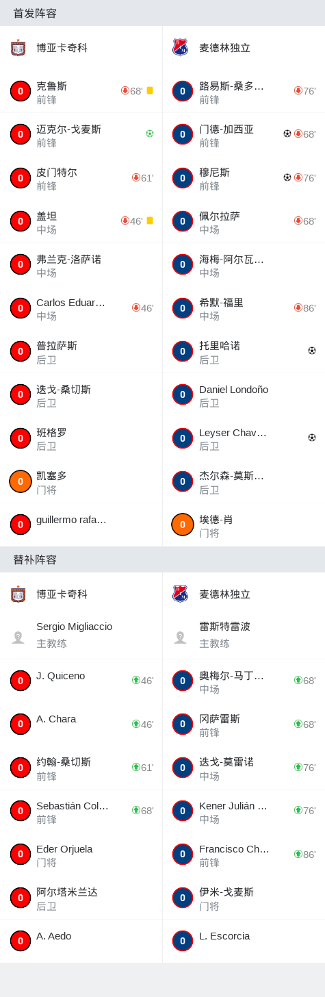 麦德林独立4-1大胜博亚卡奇科,托里哈诺建功,穆尼斯破门