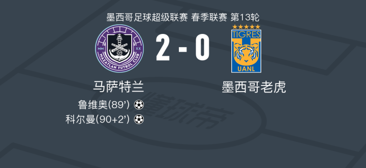 马萨特兰2-0墨西哥老虎,鲁维奥破门,科尔曼锁定胜局
