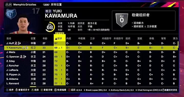你觉得合理吗?2K25更新崔永熙和河村勇辉数据,综评均为67
