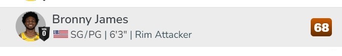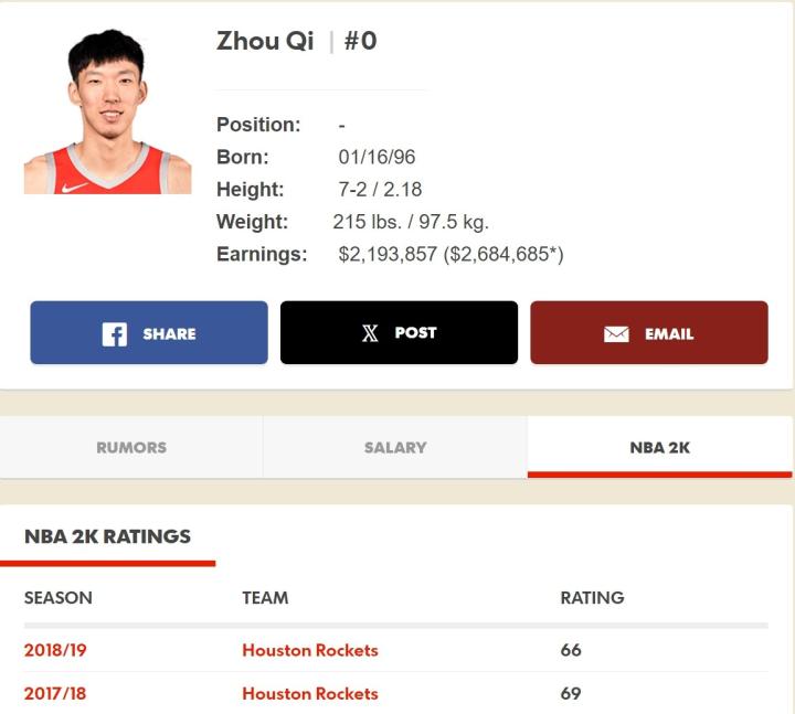 作为参考,湖人新秀布朗尼-詹姆斯的2K初始评分为68分。中国球员周琦当年被休斯顿火箭选中后,在NBA2K系列的初始综评为69,在第二年掉到66。