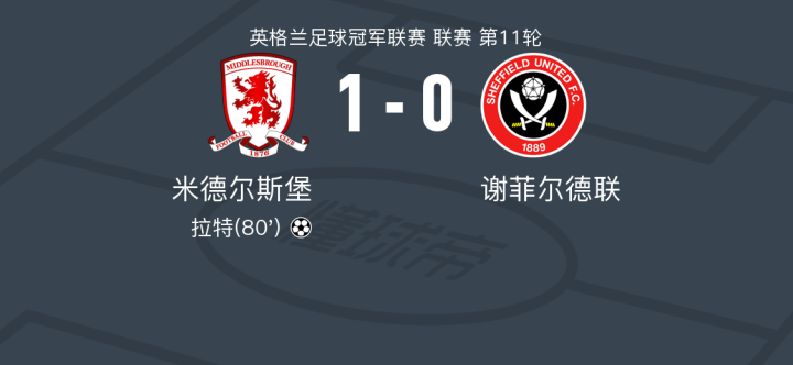 米德尔斯堡1-0谢菲尔德联,拉特制胜球