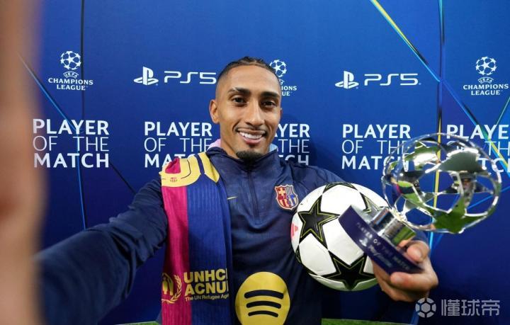 帽子戏法,欧冠官方:拉菲尼亚当选巴萨vs拜仁全场最佳球员