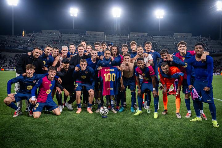 拉菲尼亚获赠巴萨百场纪念球衣,与全队合影留念LaPulga @懂球帝2024-10-24 05:09在巴塞罗那4-1击败拜仁慕尼黑的比赛中,拉菲尼亚完成了巴萨生涯百场里程碑,他在赛后获得了纪念球衣。拉菲尼亚在2022年夏天加盟巴塞罗那,在此役对阵拜仁慕尼黑的欧冠比赛中,拉菲尼亚完成了巴萨生涯的第100场比赛。在这场比赛中,拉菲尼亚的表现堪称完美,他上演了帽子戏法,帮助巴塞罗那主场4-1击败拜仁慕尼黑。赛后,拉菲尼亚获得了百场纪念球衣,并与巴萨全队合影留念。展开更多